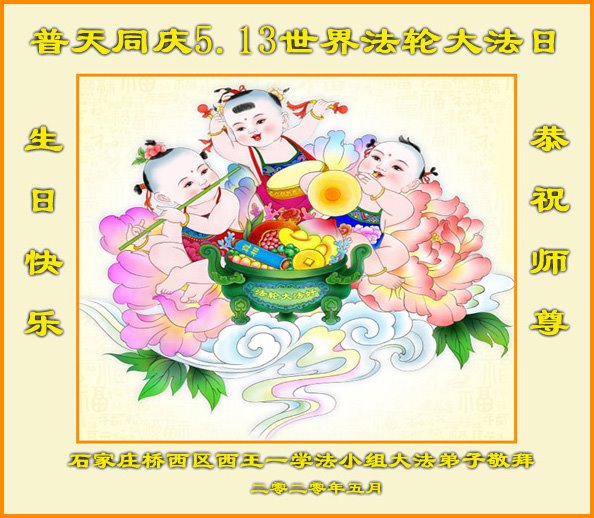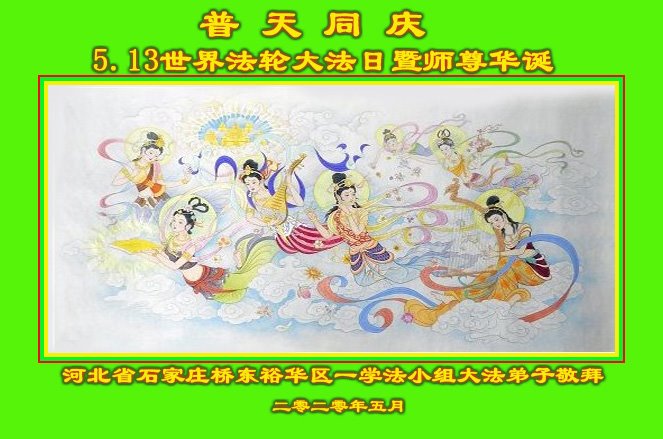 恭贺世界法轮大法日! 河北省石家庄市大法弟子恭贺513世界法轮大法日暨师尊华诞!