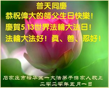 河北省石家庄市大法弟子全家恭贺法轮大法日!