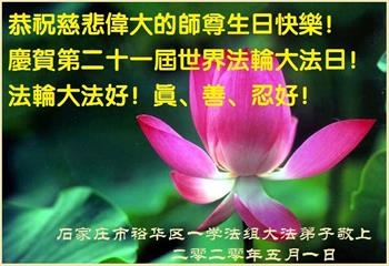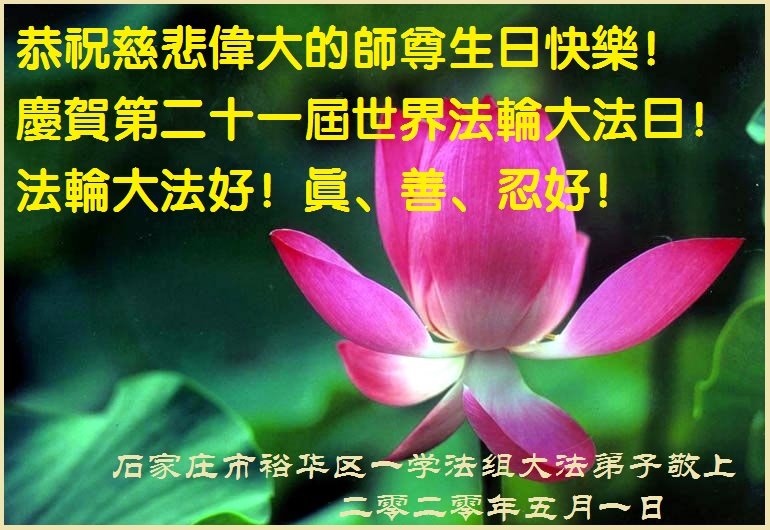 恭贺世界法轮大法日! 河北省石家庄市大法弟子恭祝师父生日快乐!