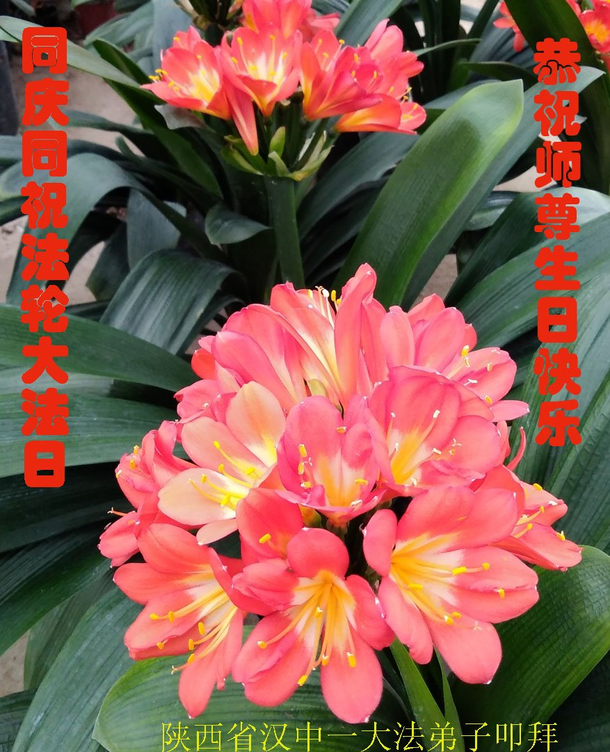 陕西省汉中市全体大法弟子恭祝师尊生日快乐!