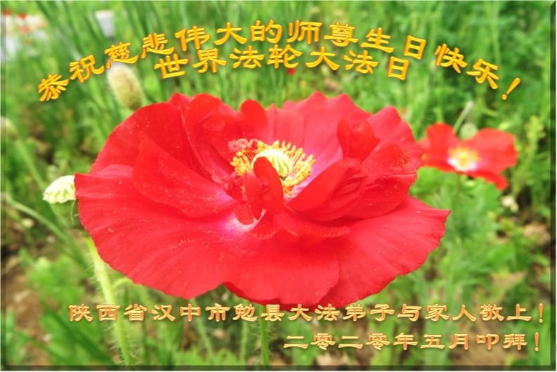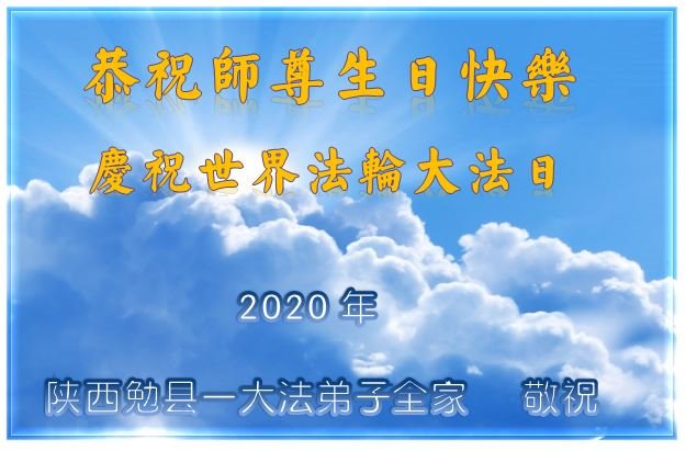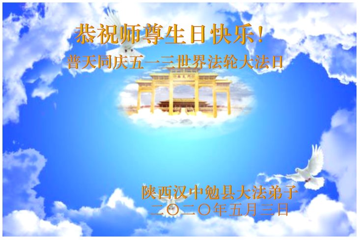 陕西省汉中市全体大法弟子敬上! 二零二零年五月 陕西省汉中市勉县全体大法弟子恭祝师尊生日快乐!
