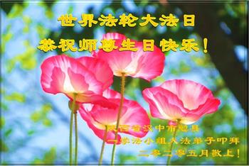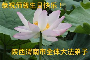 师父辛苦了!在这普天同庆的日子里,心里无比感恩师父,感谢大法,是师父和大法善解了我的家庭怨缘,给了我幸福人生,使我脱离苦海!大难当前,我要把逃生秘方告诉更多的有缘人,法轮大法好,真善忍好!叩拜师尊救度之恩! 陕西省渭南市全体大法弟子恭祝慈悲伟大的师父生日快乐!热烈祝贺法轮大法洪传二十八周年!