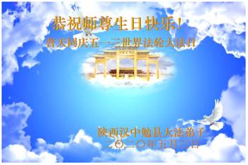 【明慧网二零二零年五月十三日】 陕西省汉中市勉县全体大法弟子恭祝师尊生日快乐!