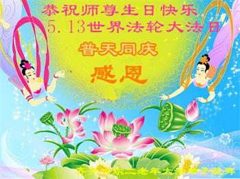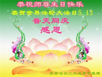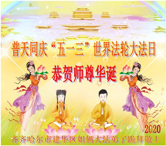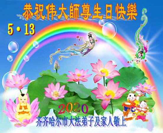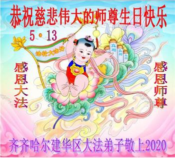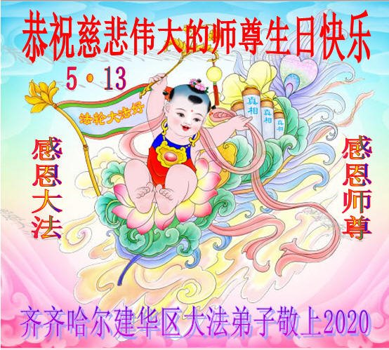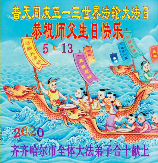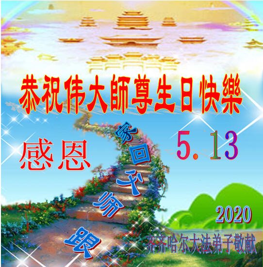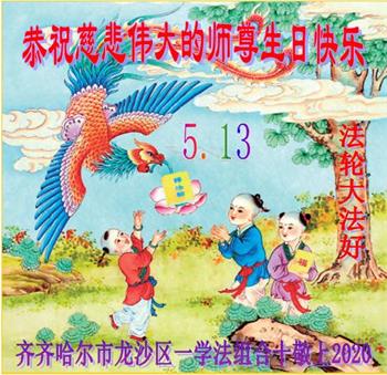 【明慧网二零二零年五月十三日】 黑龙江齐齐哈尔大法弟子恭祝慈悲伟大师尊生日快乐!普天同庆世界法轮大法日!