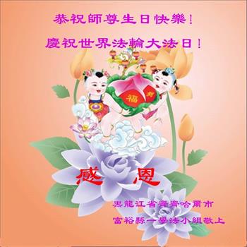 黑龙江省齐齐哈尔市富裕县一学法小组大法弟子敬贺师尊生日快乐!