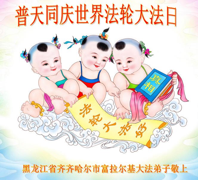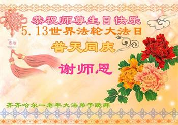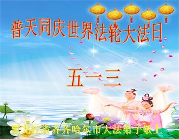 黑龙江齐齐哈尔二老年大法弟子恭贺世界法轮大法日!