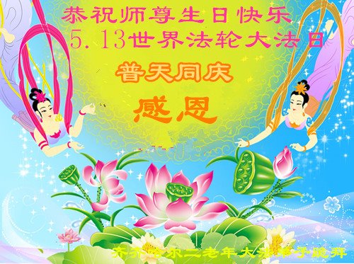普天同庆五一三世界法轮大法日! 感恩师尊慈悲救度,师尊您辛苦了! 黑龙江省齐齐哈尔市富裕县一大法弟子敬贺法轮大法日!