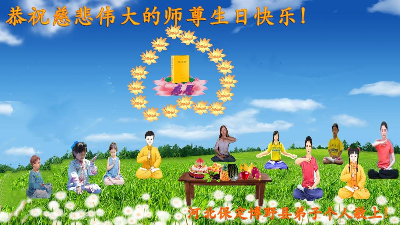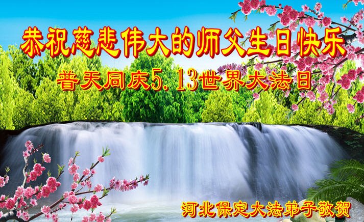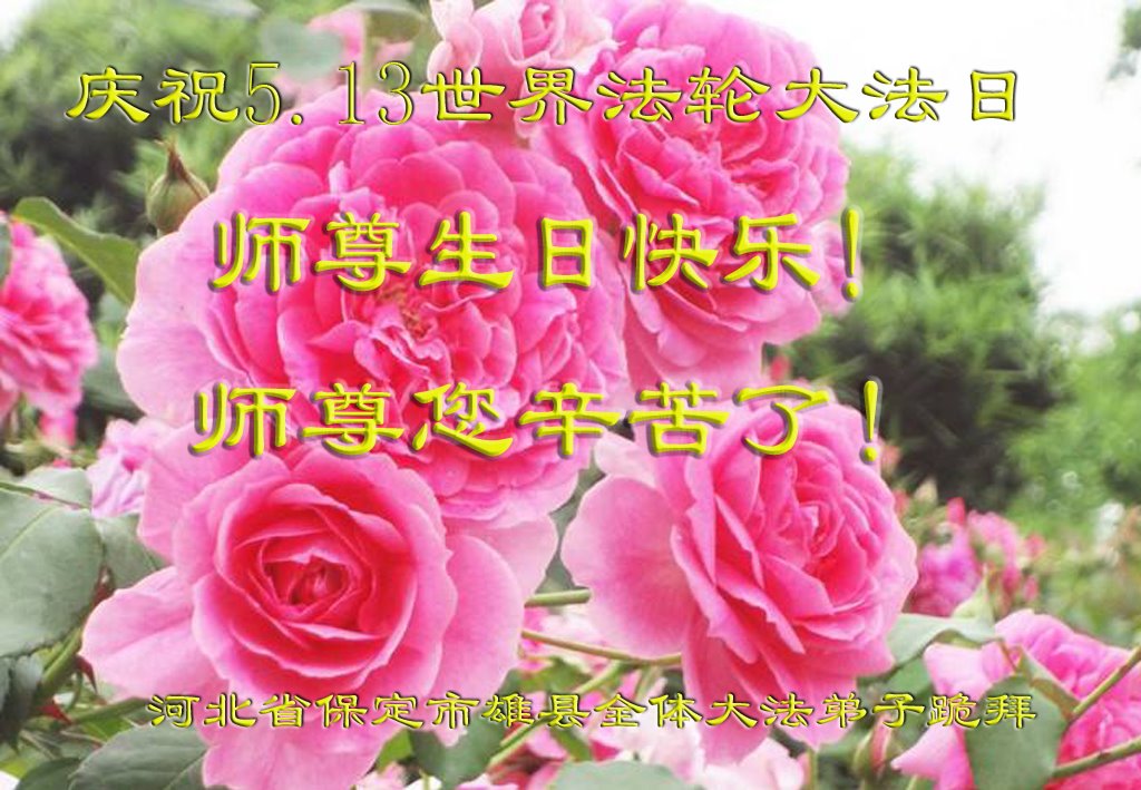 感谢师父慈悲救度! 河北省保定市雄县全体大法弟子恭贺世界法轮大法日!恭祝师父生日快乐!