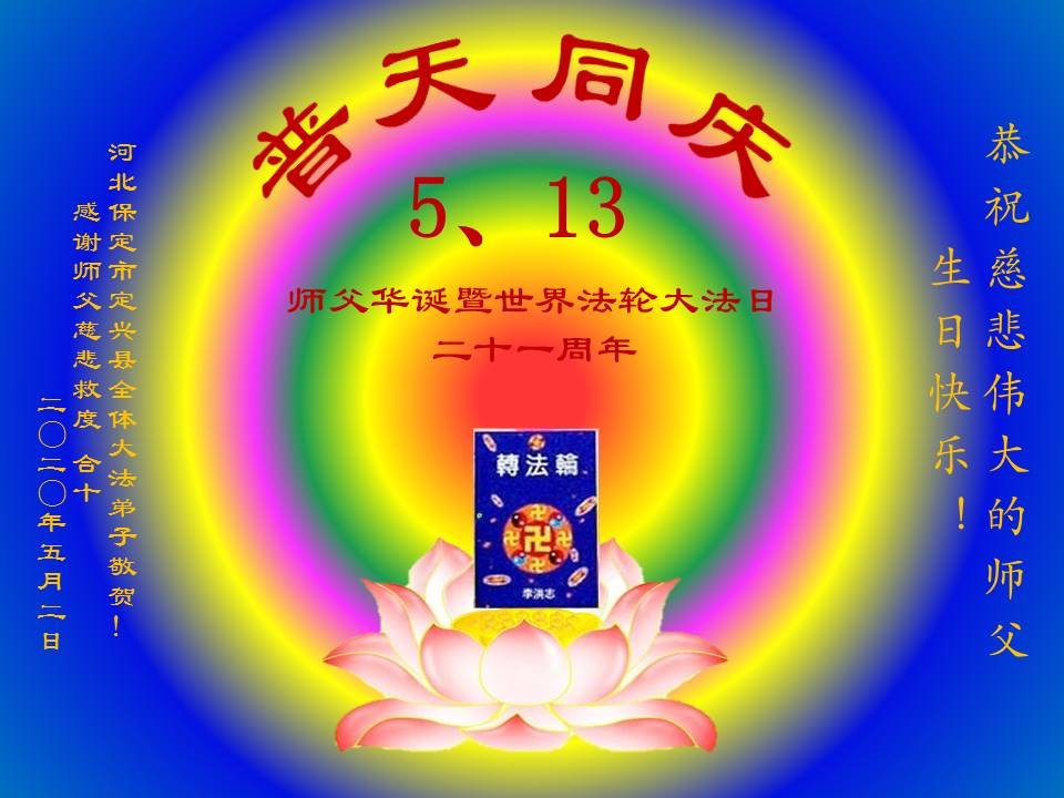 感谢师父慈悲救度! 河北省保定市定兴县全体大法弟子恭祝慈悲伟大的师父生日快乐!