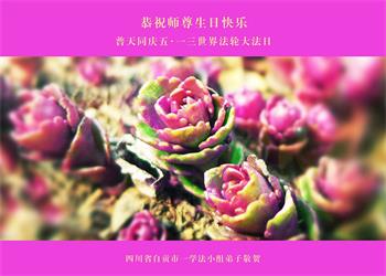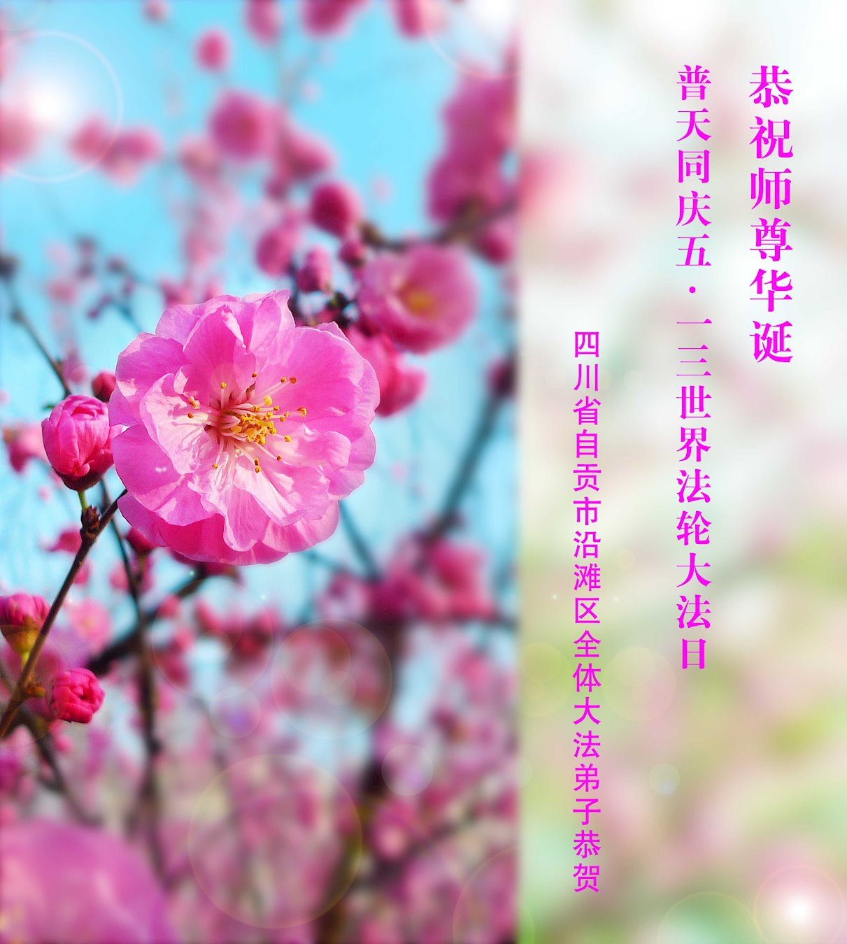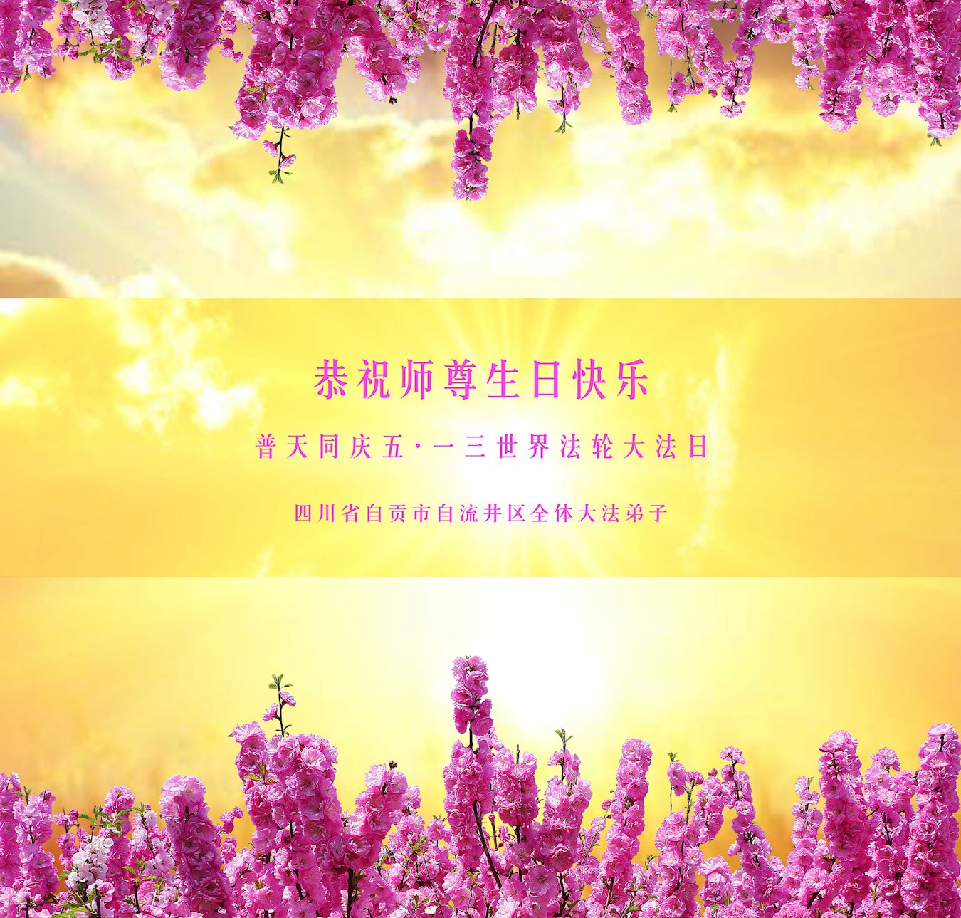 【明慧网二零二零年五月十三日】 四川省自贡市沿滩区全体大法弟子恭祝师尊华诞!