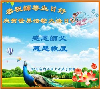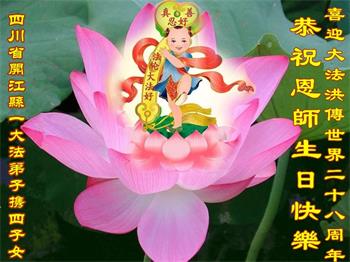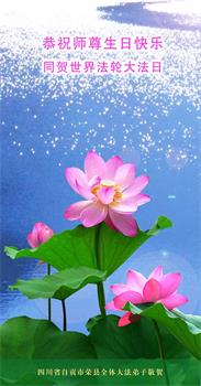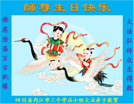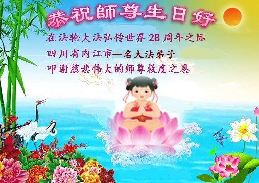 恭祝恩师生日快乐! 四川省内江市大法弟子恭祝师尊生日快乐暨世界法轮大法日!