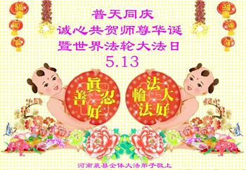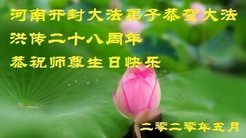河南省开封市大法弟子恭贺世界法轮大法日暨恭祝伟大慈悲的师尊生日快乐!