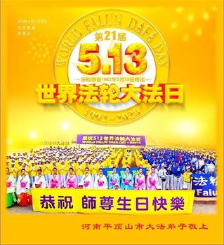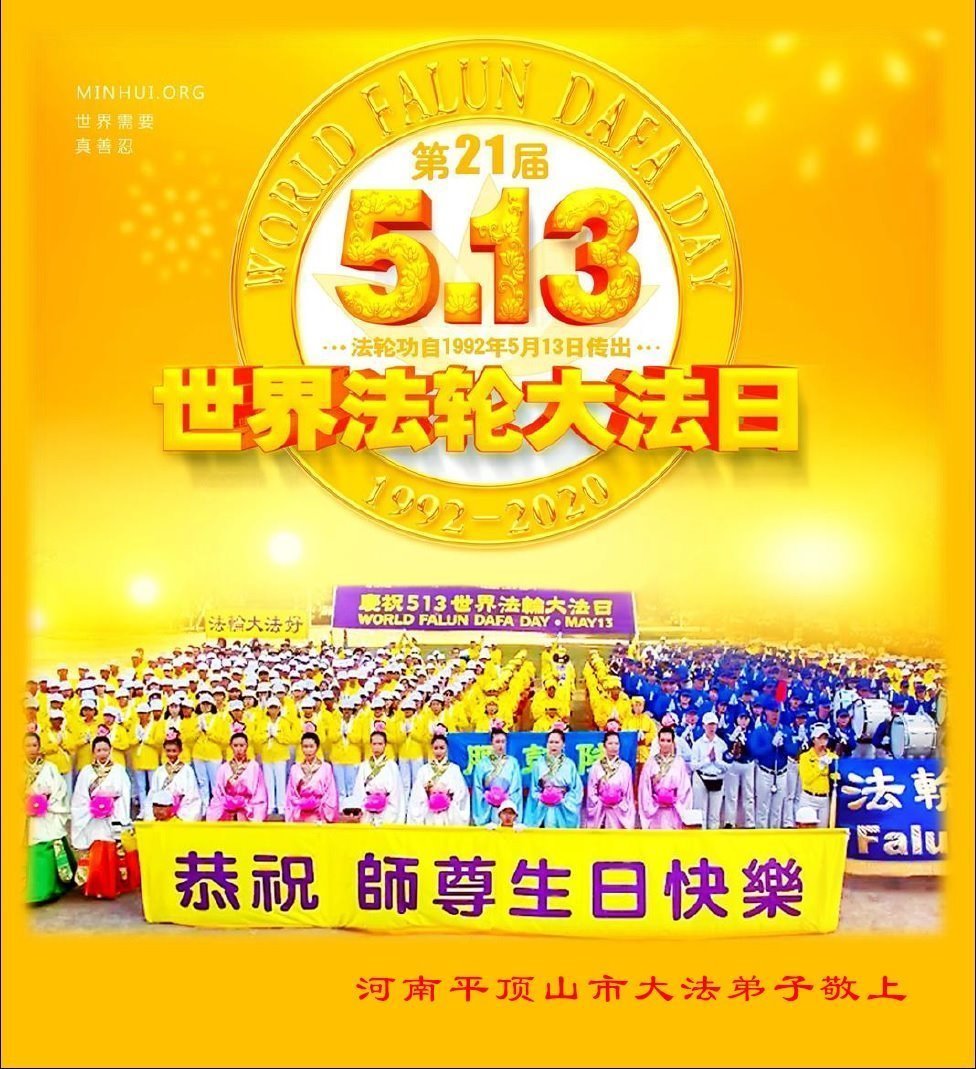 河南平顶山市市区大法弟子 河南省驻马店市汝南县一大法弟子恭祝师尊华诞暨庆祝第二十一届世界法轮大法日!