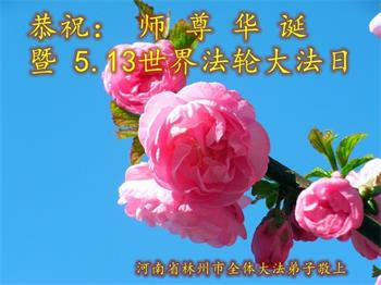 河南省林州全体弟子恭祝师尊华诞暨5.13世界法轮大法日,弟子感恩师尊的慈悲救度,一定精進修炼,做好三件事,以报师恩! 河南省濮阳市全体大法弟子恭祝师父生日快乐!