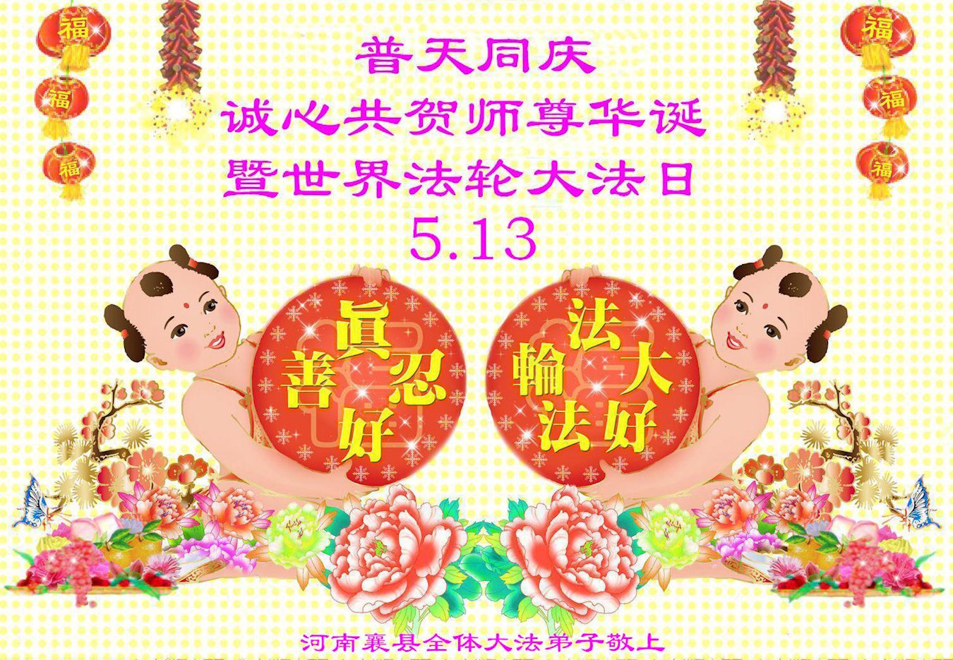 河南襄县全体大法弟子恭祝慈悲伟大的师尊生日快乐!庆祝世界法轮大法日!