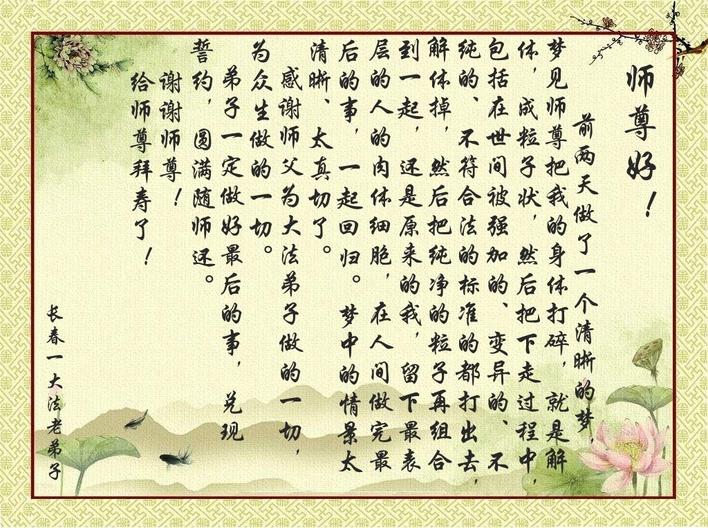 吉林省长春市大法弟子敬献 吉林省长春市大法弟子恭祝师父生日快乐!