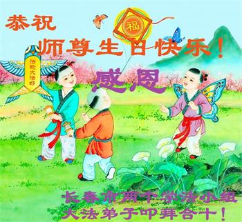 吉林省长春两个学法小组大法弟子恭祝师尊生日快乐!