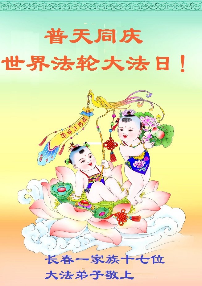 吉林省长春一家族十七位大法弟子恭贺世界法轮大法日!