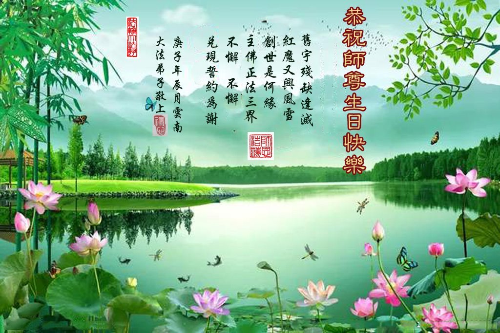 恭祝慈悲伟大的师尊生日快乐!普天同庆世界法轮大法日! 云南大理宾川大法弟子叩拜 2020年5月9日 云南省昆明市五华区大法弟子恭祝师尊生日快乐!祝贺世界法轮大法日!