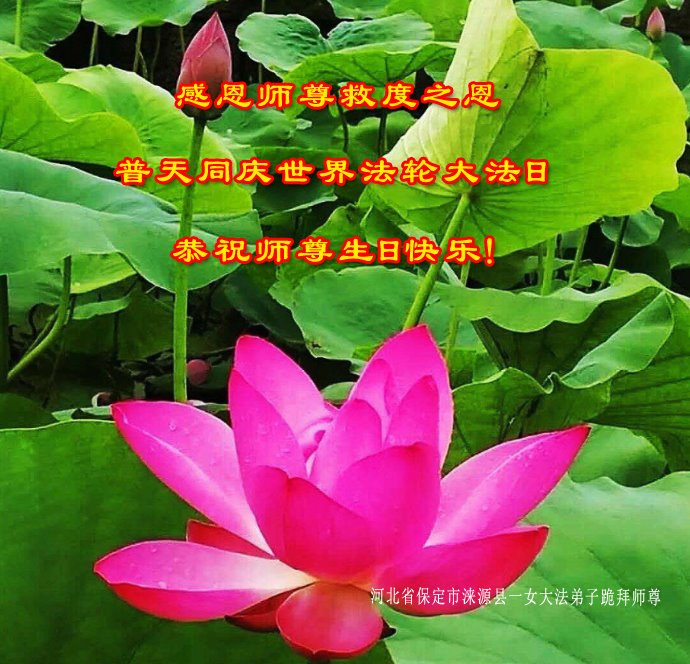 感恩师父救度之恩!我知道自己能走到今天,这其中不知道融入师父多少心血。师父博大精深的法理,从生命的最深处改变着我,使我由一个身体多病,自私自利,心胸狭小,整日忧愁无奈,让人瞧不起的人,变成了一个事事处处为别人着想,堂堂正正的修炼者,成为一个走在神路上的健康大法徒。这是生命的再造,总之,用尽人间的语言也表达不了师尊的救度之恩。弟子只能精進实修,多看对方的优点,弥补自己的不足,珍惜每次提高的机会,在正法進程有限的时间里兑现誓约,坚修大法到底!跪拜师尊。 河北省保定市大法弟子恭祝师父生日快乐!