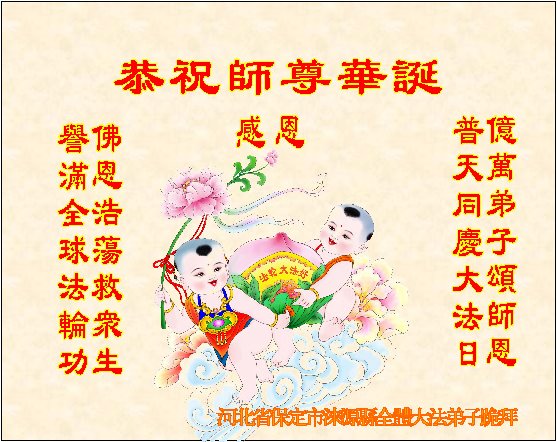 在这正法的最后时刻,我们一定修好自己,做好三件事,报答师父对弟子的洪恩! 河北省保定一学法小组大法弟子恭祝师父生日快乐!