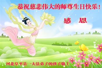 【明慧网二零二零年五月十三日】 河北省保定市阜平县一大法弟子的孩子恭祝慈悲伟大的师尊生日快乐!