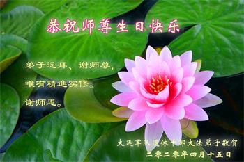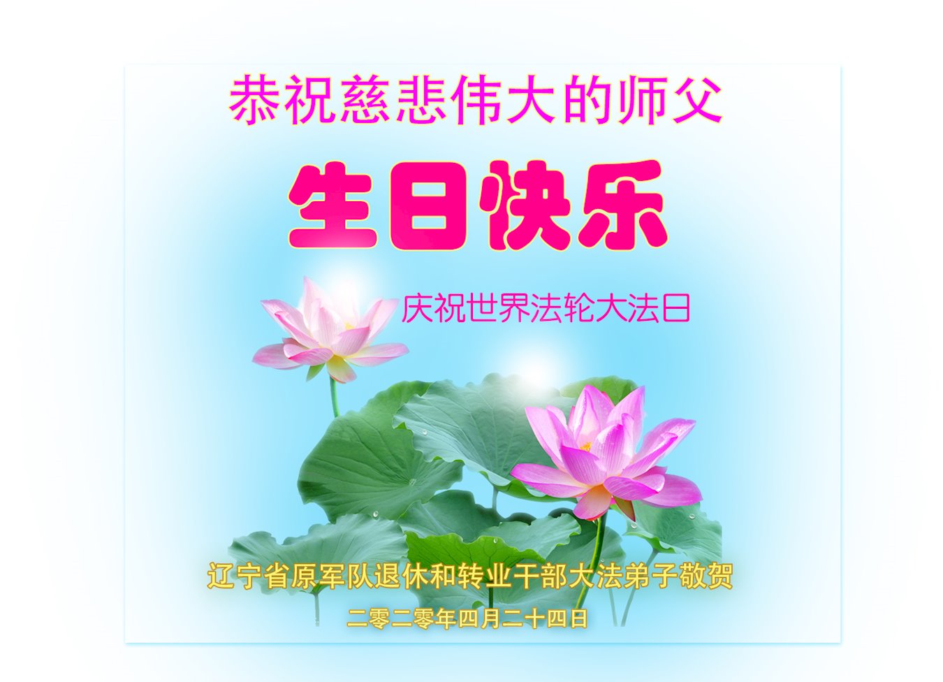 大连原军队退休干部大法弟子敬贺 二零二零年四月十五日 辽宁省原军队退休和转业干部大法弟子恭祝慈悲伟大的师父生日快乐!