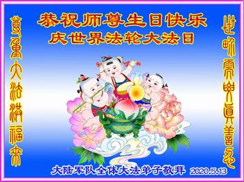 【明慧网二零二零年五月十三日】 大陆军队大法弟子恭祝师尊生日快乐!同庆世界法轮大法日!