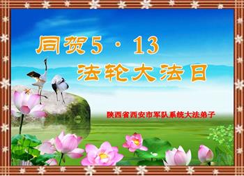 陕西省西安市军队系统大法弟子恭祝师尊生日快乐!同贺世界法轮大法日!
