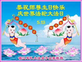 江苏省镇江军队大法弟子全家敬拜师尊,感恩师尊慈悲救度!恭祝师尊生日快乐!庆祝世界法轮大法日!抓紧实修,助师正法,愿更多世人铭记:法轮大法好,尊重大法福寿康宁! 陕西省西安军队系统大法弟子恭祝师尊生日快乐!同贺世界法轮大法日!
