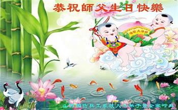 弟子怀着最最崇敬的心情遥拜师尊!恭贺师尊华诞暨世界法轮大法日!师父辛苦了!敬祝师父生日快乐! 山西国防兵工系统大法弟子恭祝伟大的师尊生日快乐!恭贺法轮大法洪传世界! 青海省住军现役退役大法弟子恭祝伟大的师尊生日快乐!恭贺法轮大法日!