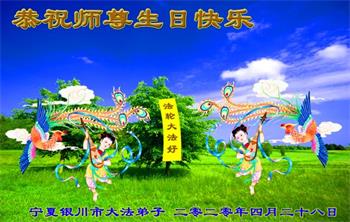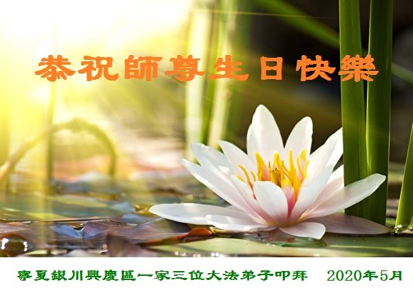 【明慧网二零二零年五月十三日】 宁夏银川市兴庆区一家三位大法弟子恭祝师尊生日快乐!