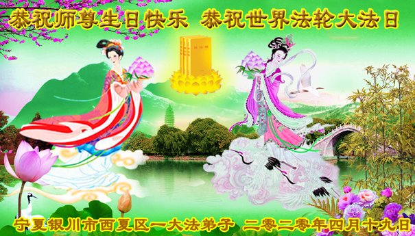 宁夏银川一大法弟子恭贺世界法轮大法日暨师尊华诞!