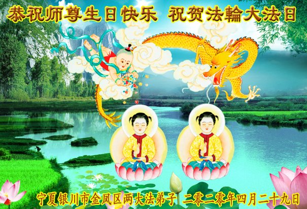 宁夏银川市一对夫妻大法弟子恭祝师尊生日快乐!普天同庆法轮大法日!