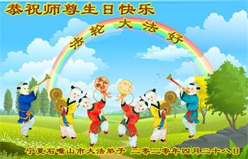 宁夏石嘴山市大法弟子感恩师父慈悲救度!恭祝师父生日快乐!