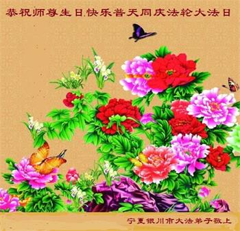 宁夏银川市大法弟子恭贺法轮大法日!感恩师尊的慈悲救度!叩拜师尊生日快乐!