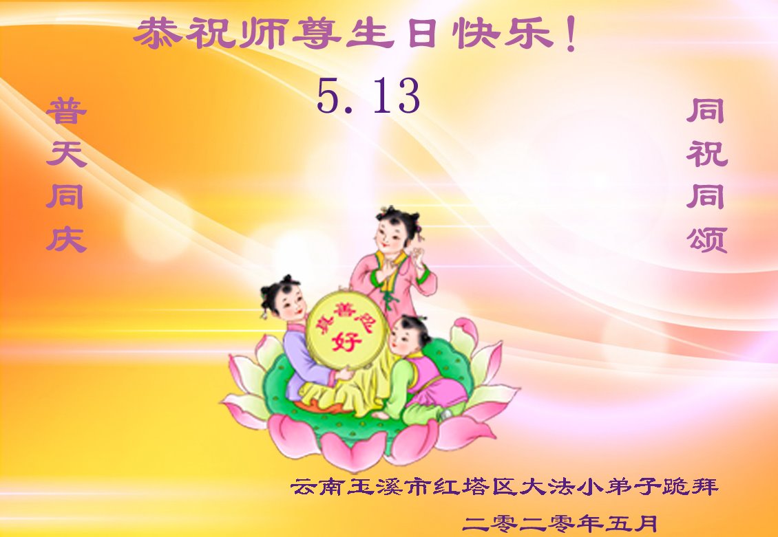 欢庆世界法轮大法日! 云南玉溪市红塔区大法小弟子恭祝师父生日快乐!普天同庆世界法轮大法日!