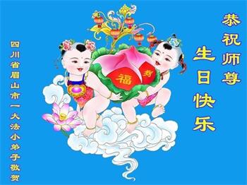 四川省眉山市一大法小弟子敬祝师父生日快乐!