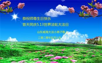 山东威海大法小弟子恭祝慈悲伟大的师父生日快乐!
