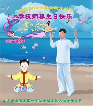 山东省烟台市芝罘区大法弟子恭祝师尊生日快乐!普天同庆世界法轮大法日!