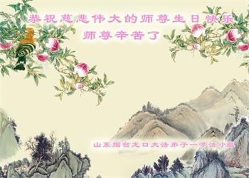 山东省烟台市龙口市一学法小组大法弟子恭祝慈悲伟大的师尊生日快乐!