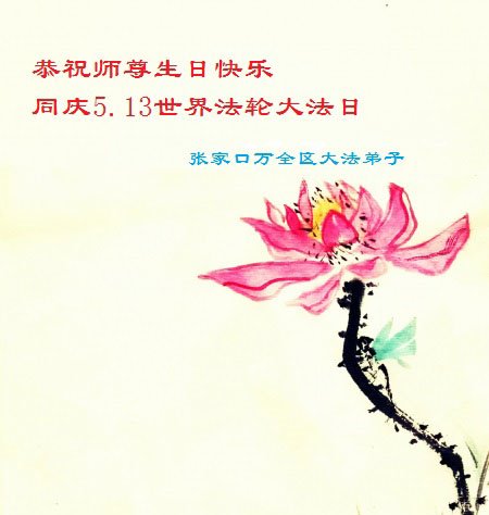 河北省张家口市宣化区一大法弟子庆祝世界法轮大法日!恭祝师父生日快乐!