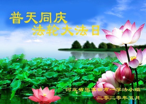 河北省张家口市宣化区一学法小组大法弟子庆祝世界法轮大法日!恭祝师父生日快乐!