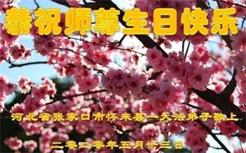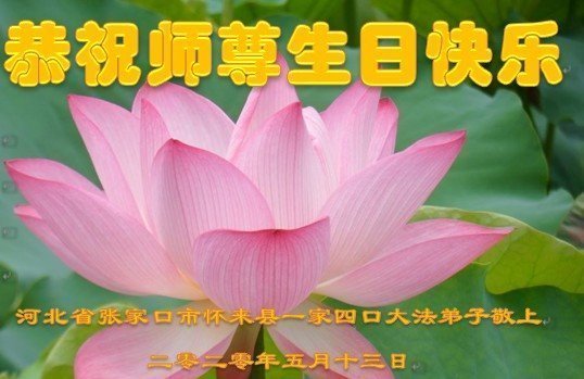 【明慧网二零二零年五月十三日】 河北省张家口市怀来县大法弟子恭祝师尊生日快乐!