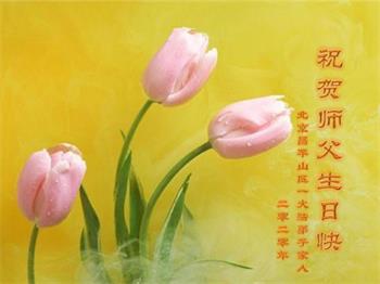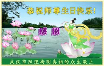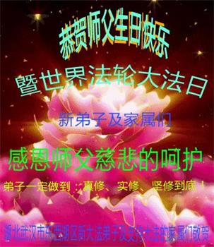 师尊华诞即将到了!虽远隔重洋,弟子与家人遥祝慈悲伟大的师尊生日快乐! 年年岁岁花相似, 岁岁年年人不同, 醒来惊觉不是梦, 弟子修炼要精進, 遥祝师尊生日好! 湖北省武汉杨逻街明真相的众生恭祝慈悲伟大的师尊生日快乐!