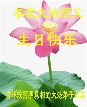 感恩师尊救度众生,弟子及家人无以回报,盼师尊多一点欣慰,少一点操劳,谢谢师父! 河北省石家庄市裕华区一老年大法弟子恭祝师父生日快乐!