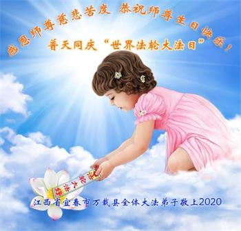 江西省宜春市万载县大法弟子恭祝师尊生日快乐!普天同庆世界法轮大法日!
