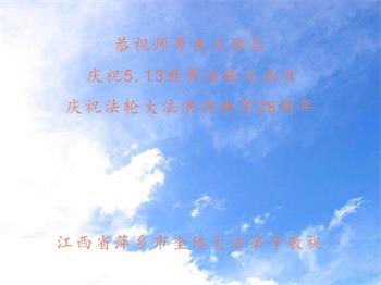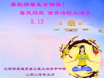 江西南昌進贤县三里大法弟子恭祝师父生日快乐!普天同庆世界法轮大法日!