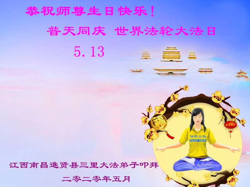 江西省南昌市大法弟子敬贺 2020年5月8日 江西省九江市大法弟子恭祝师尊生日快乐!