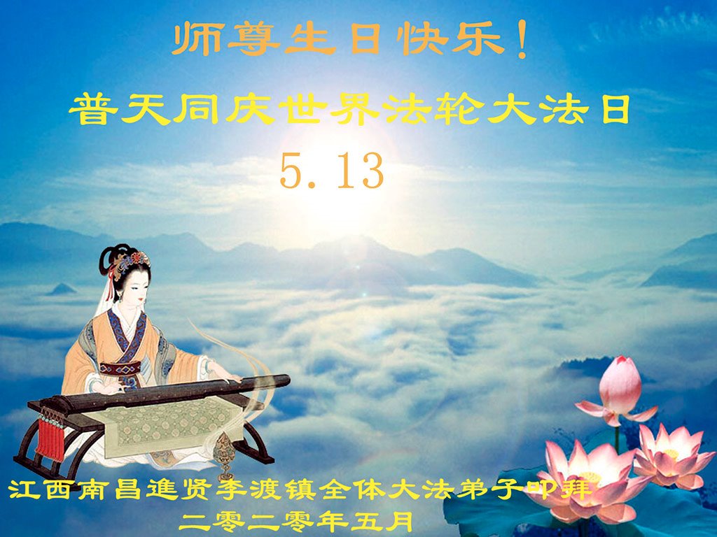 江西南昌進贤李渡镇全体大法弟子恭祝师父生日快乐!普天同庆世界法轮大法日!